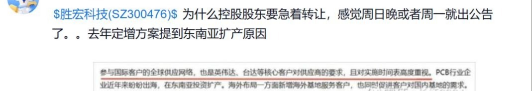 胜宏科技控股股东询价转让的消息在资本市场引发广泛关注,有投资者提出“大股东拿到这资金干嘛也值得关注,是投资相关产业和公司竞争?还是借给公司?”,还有人猜测,或与去年定增方案提到东南亚扩产有关。